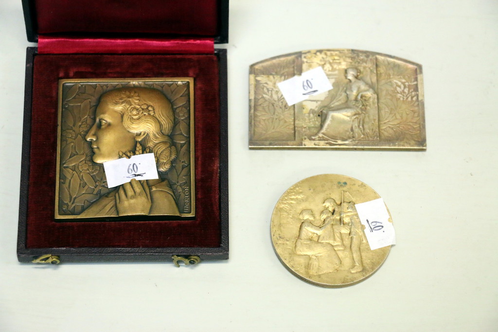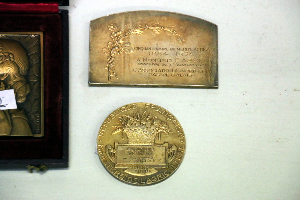 60 | Récompense agricole. Bronze par MORLON / Cinquantenaire du mérite agricole" 1884-1934 "à Mr CASSEZ Ministte de l'Agriculture" par René" Baunichon / Médaille "Science et Labeur" à E.CASSEZ | 50/80 |