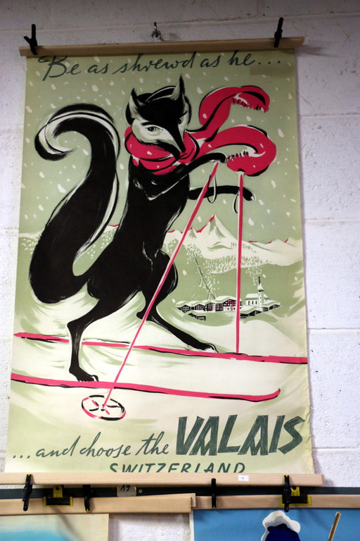 64 | Affiche de tourisme Sport d'hiver ski SUISSE. Be as shrewd as he, and choose the Valais. 102 x 64 cm. Bon état | 450/500 |