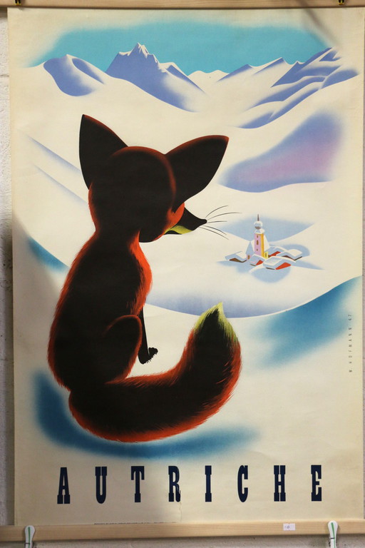 65 | Affiche de tourisme Sport d'hiver ski AUTRICHE. 95 x 63 cm. Déhirure en bas, sans manque | 350/400 |