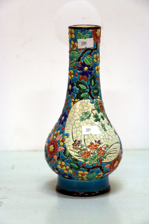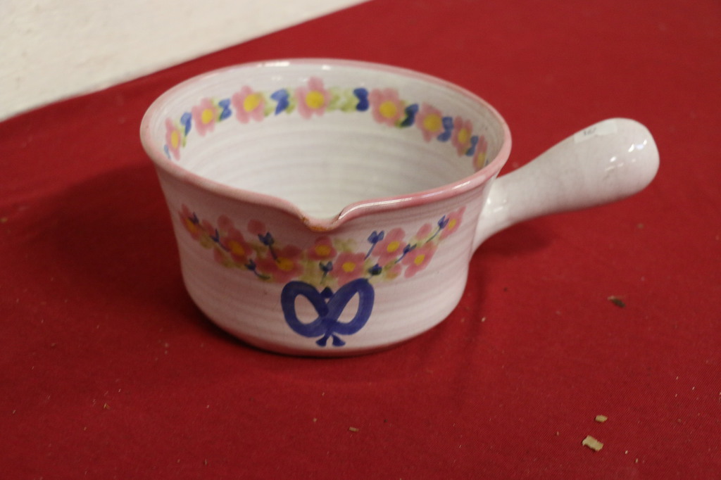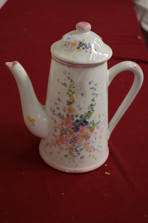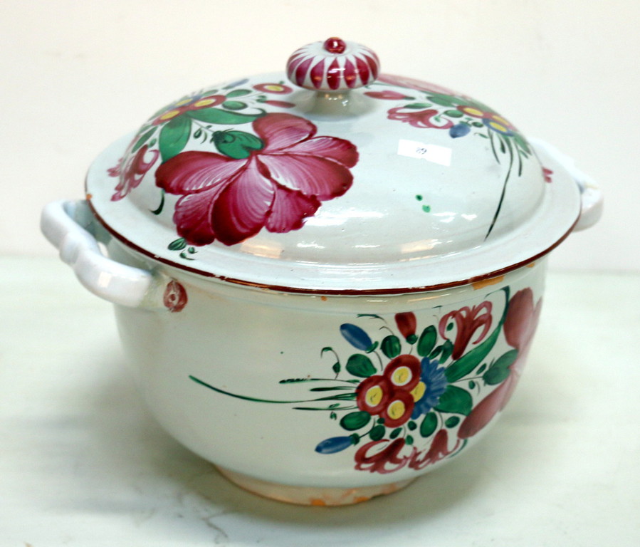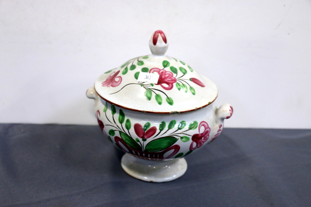 363 | LUNEVILLE . Petit bouillon à décor de fleurs et d'un panier fleuri. Marque KG Luneville. H : 17 cm | 20/35 |
