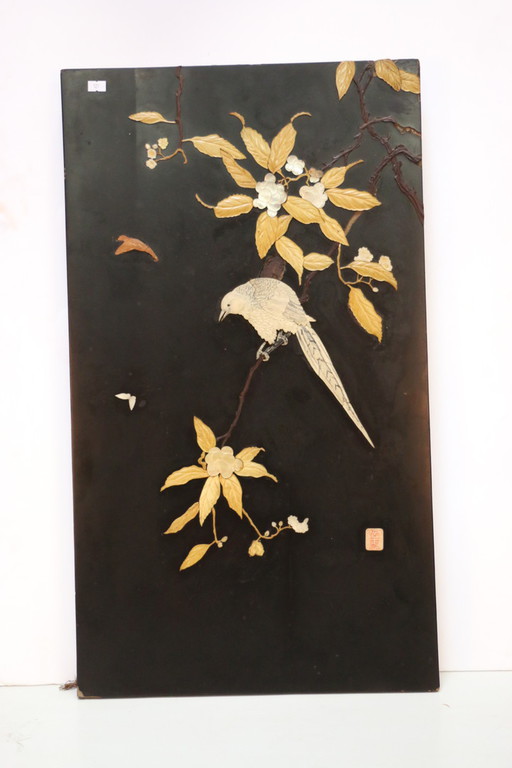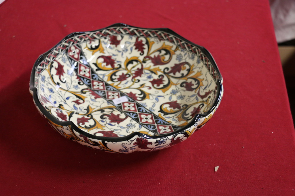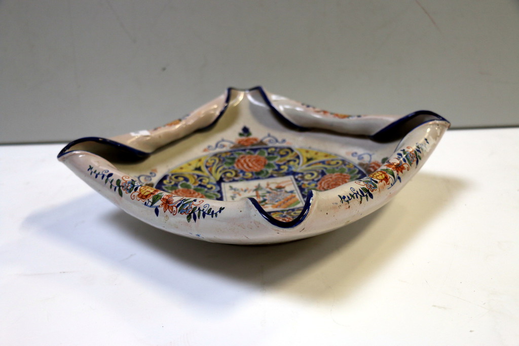 360 | NEVERS : Important saladier à décor central d'un oiseau dans un encadrement de fleurs. L : 29 x 29 cm | 30/45 |
