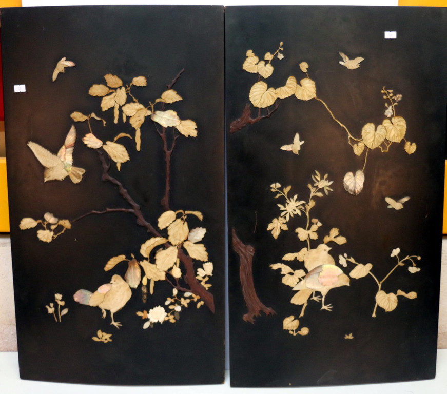 399 | Paire de chaises en bois sculpté à bords mouvementés; 4 pieds vis | 30/50 |