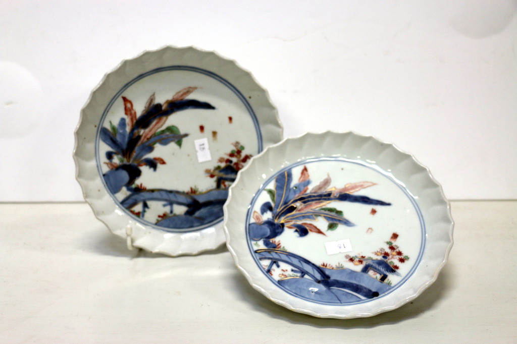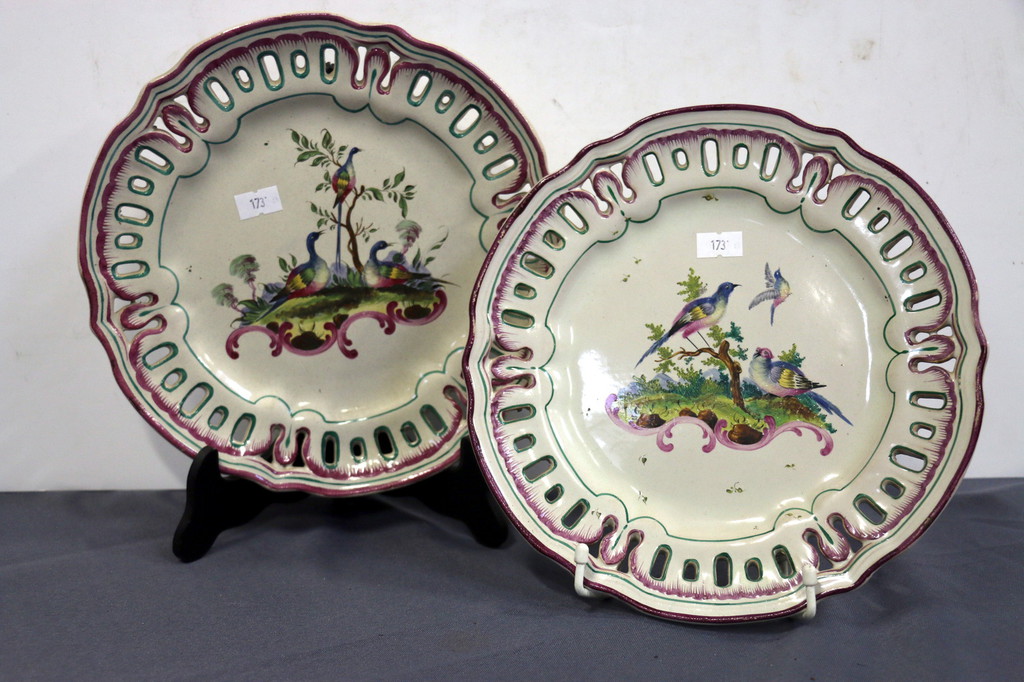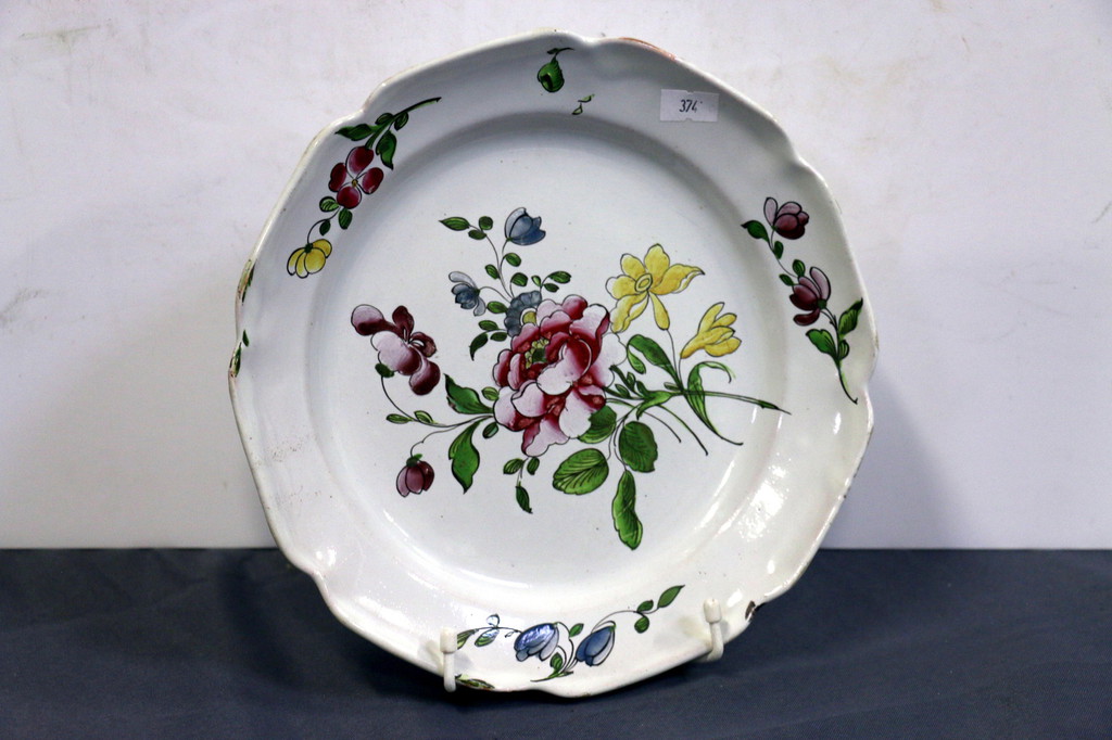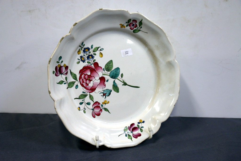 372 | SCEAUX / MOUSTIERS ? XVIII. 2 Assiettes polylobées à décor chatironné d'un branchage fleuri. Petites égrenures | 40/60 |