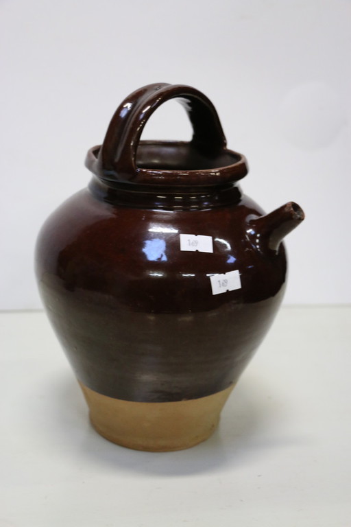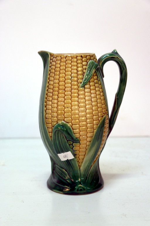 441 | Pichet à anse en barbotine à motif de maïs. H : 20 cm | 15/20 |