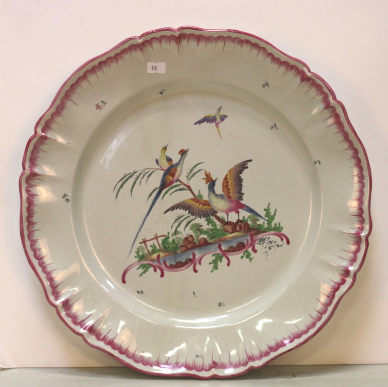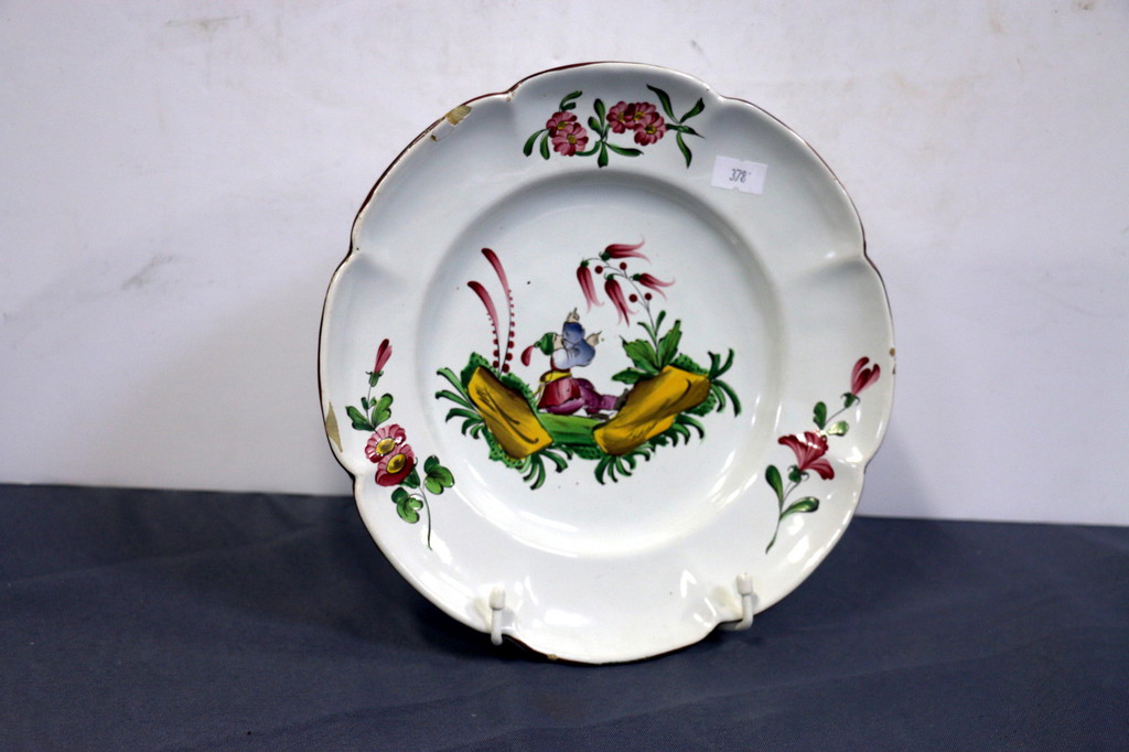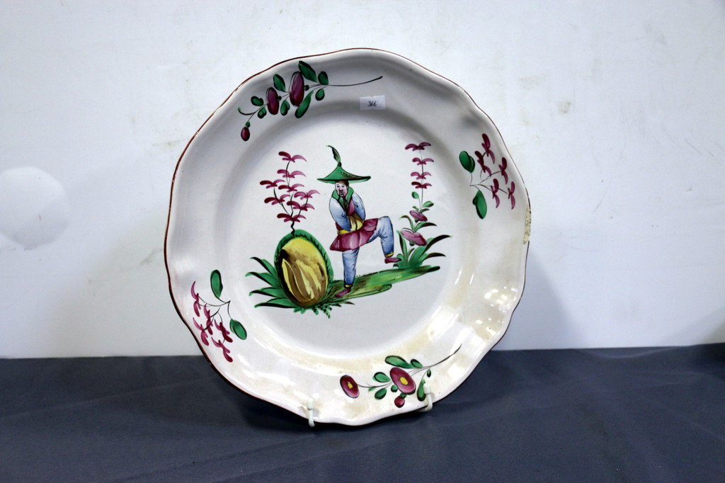 366 | LES ISLETTES ? Fin XVIII° / début XIX°. Plat rond polylobé 'au chinois'; brindilles fleuries sur l'aile. Diam : 30,5 cm | 80/120 |