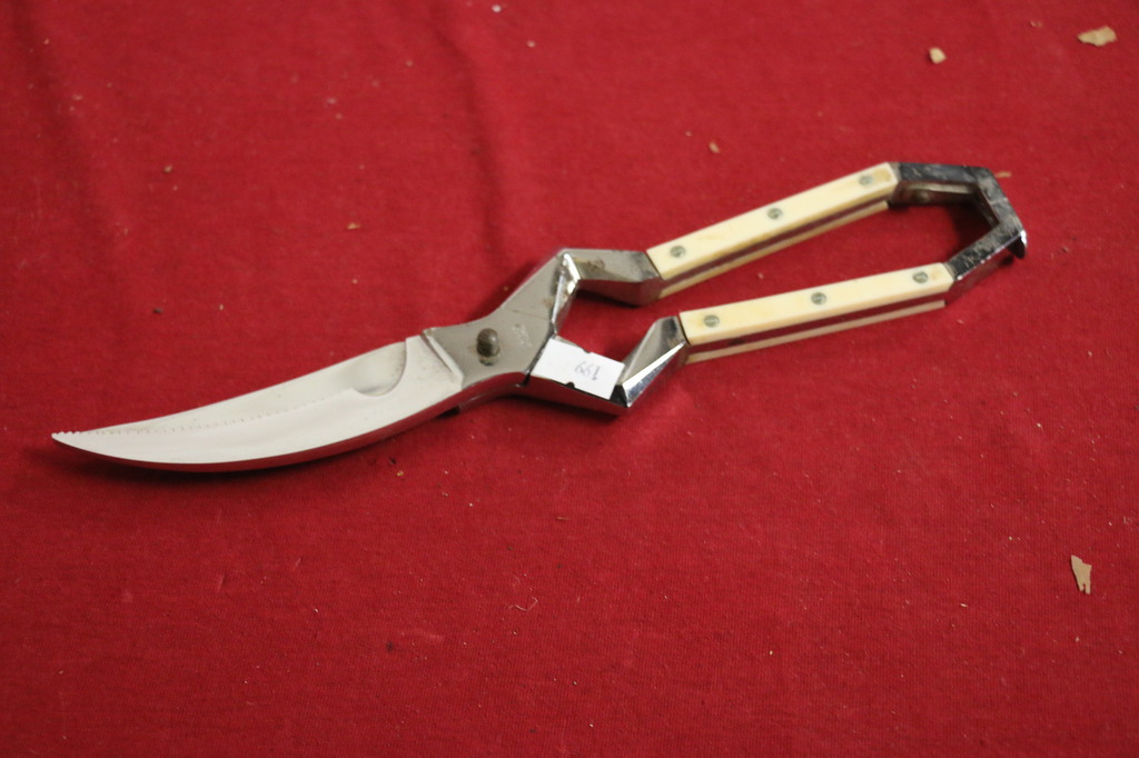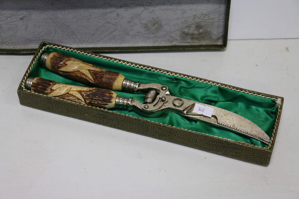 348 | Grand coupe volaille; manche en corne de chevreuil , lame de Baron à SOLINGEN, avec coffret | 20/30 |