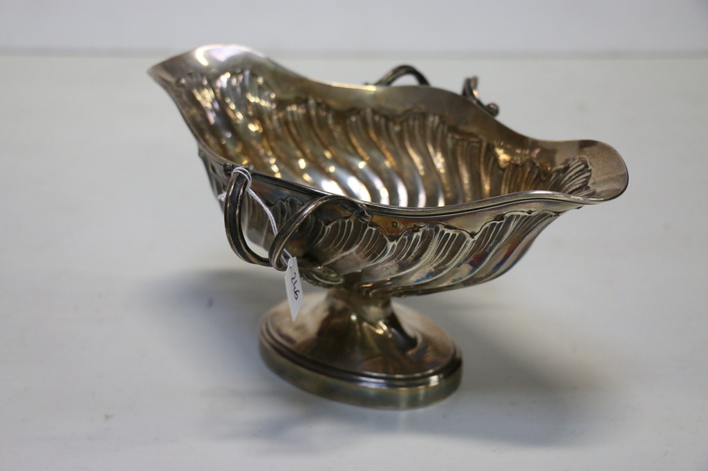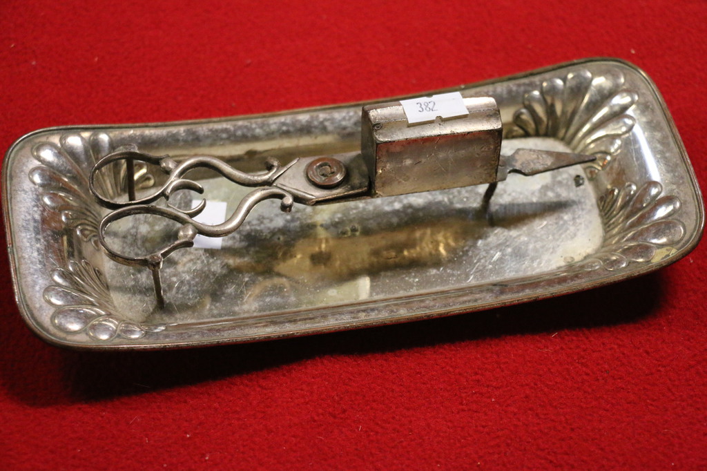 377 | EST XIX°. Plat de forme argenterie à décor de roses. Lgr 32,5 cm | 40/60 |