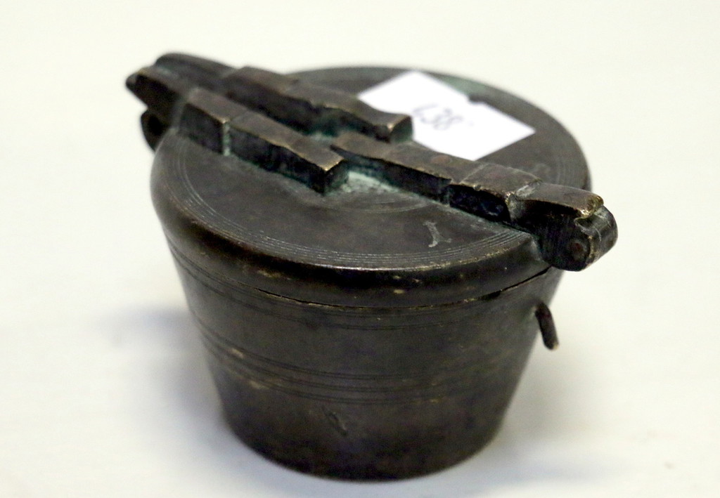 435 | Pile à godets en laiton dite 'Pile de Charlemagne'. XVIII° (Bras de fermoir manquant) | 20/35 |