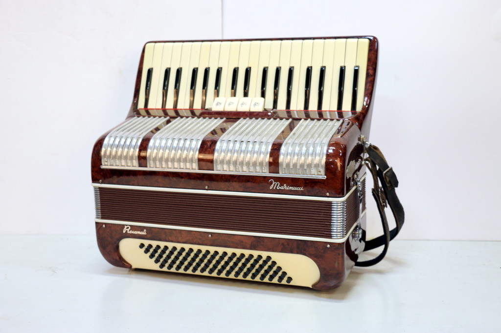 438 | Accordéon Paul BEUSCHER; Porte des étiquettes "Recanati" et "Marinucci" | 100/200 |