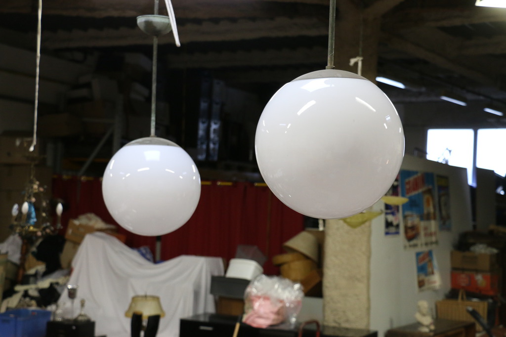 444 | 2 Lustres Art Déco, vers 1940, avec tige en laiton | 60/80 |