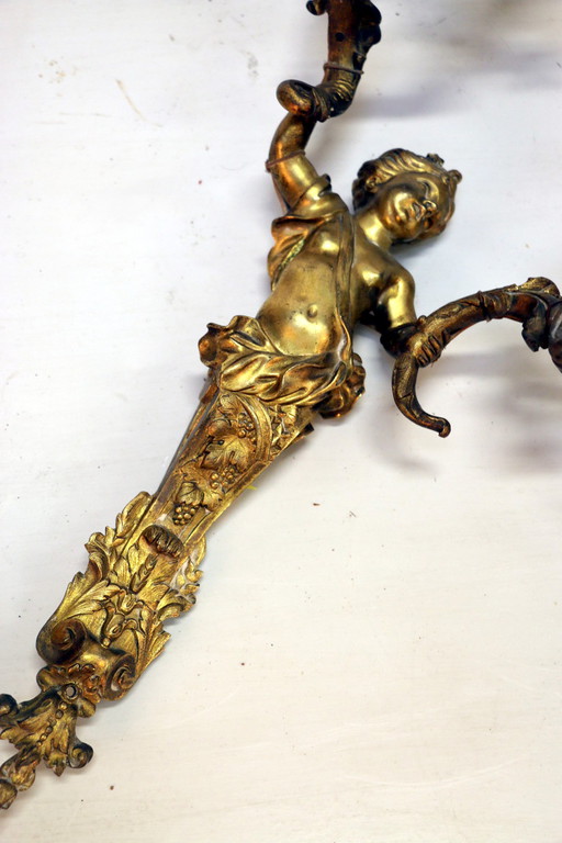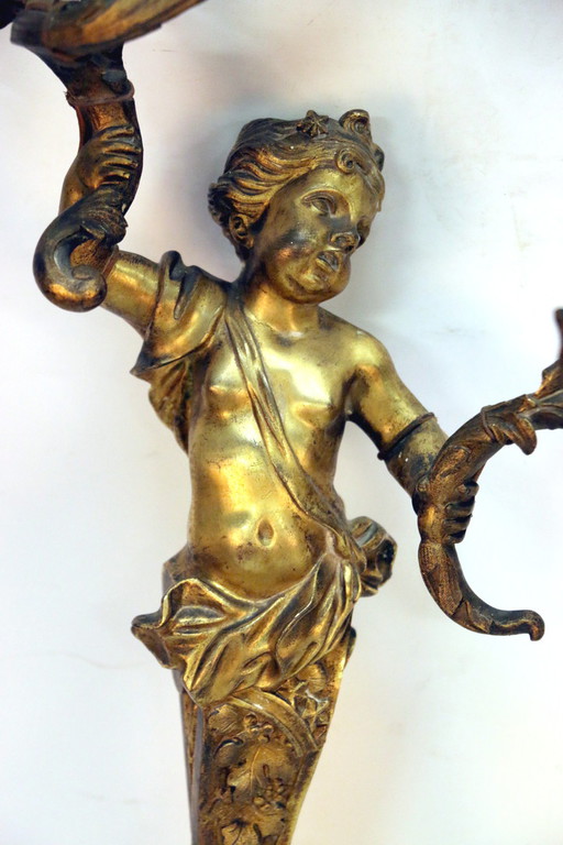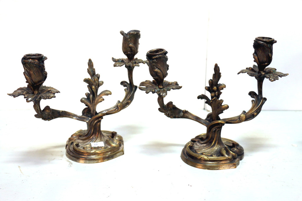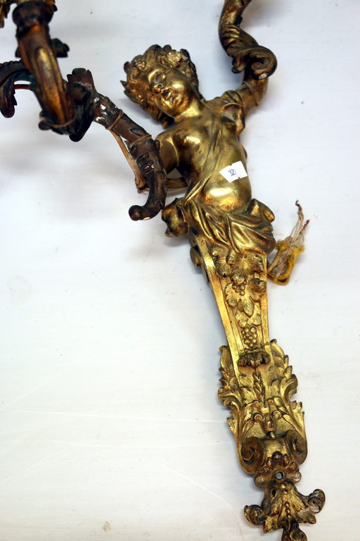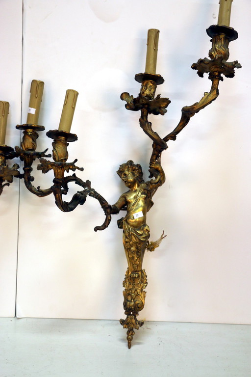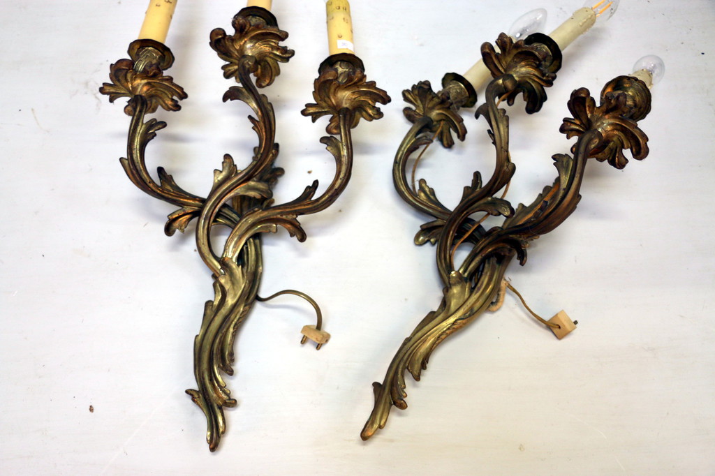 383 | Paire d'appliques à 3 bras de lumières en bronze doré. Style Louis XV. H : 52 cm | 35/50 |