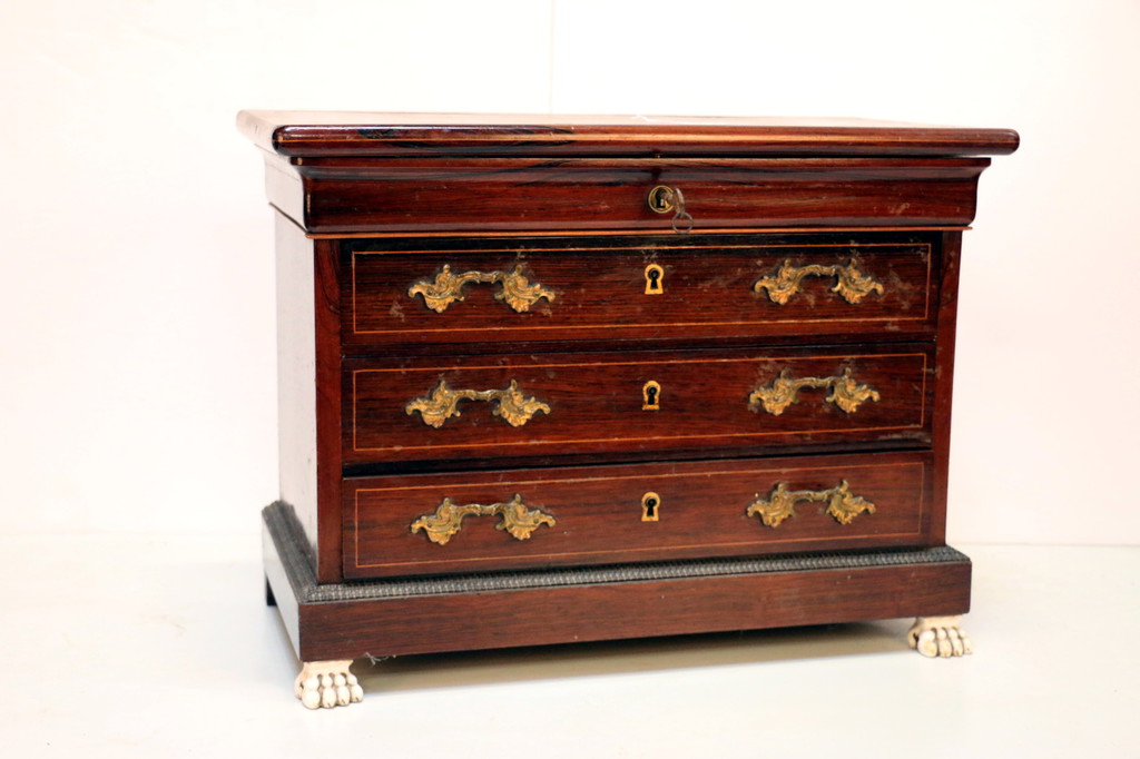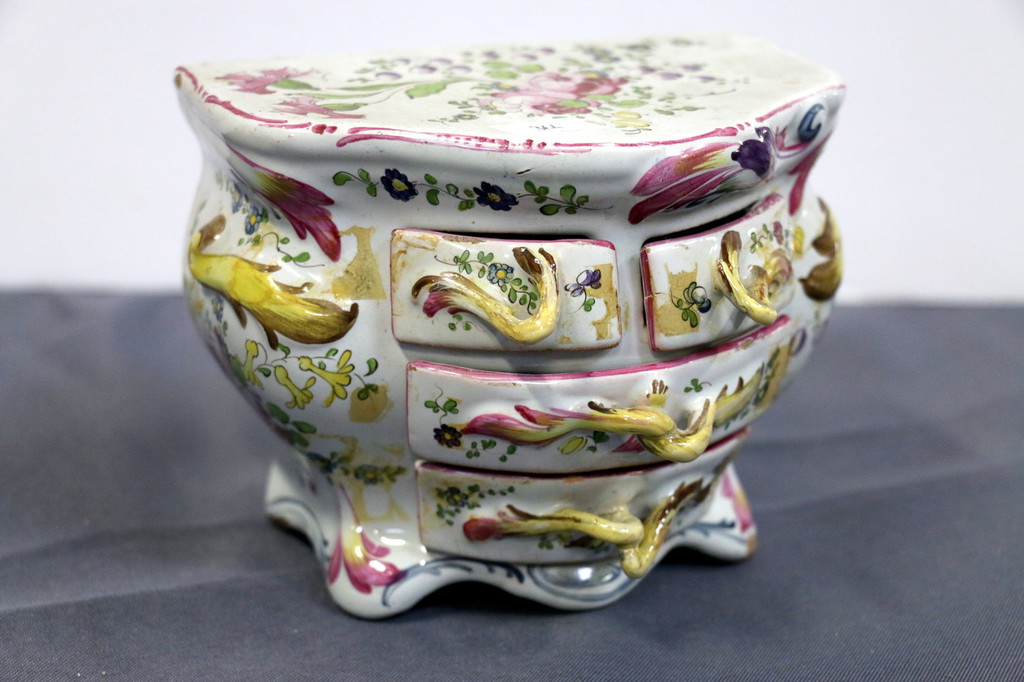 364 | STRASBOURG : Commode miniature à décor floral. Porte une signature H/39 | 50/80 |