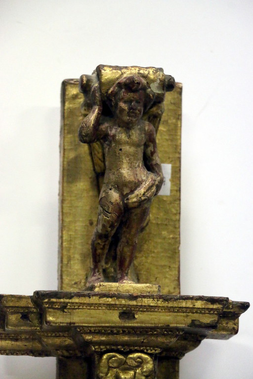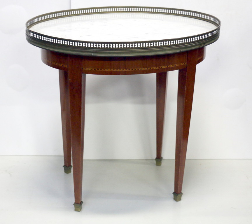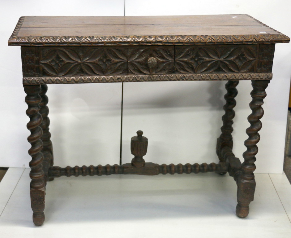 398 | Table d'appui en bois sculpté à 1 tiroir central. 4 pieds et entretoise torsadée. | 40/60 |