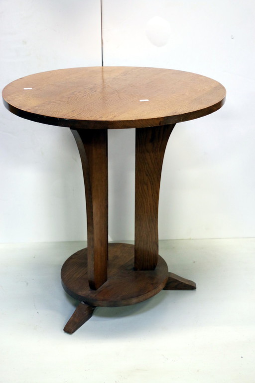 386 | Petite table cible à abattant en chène. H : 48 cm Diam : 39 cm | 20/35 |