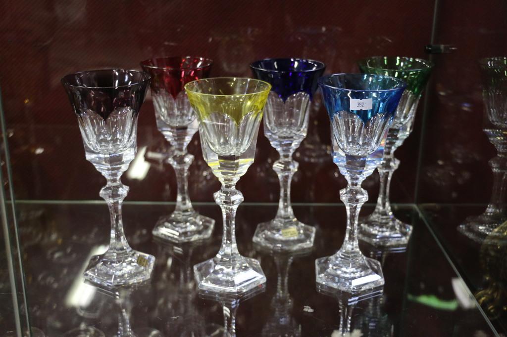 352 | SEVRES. 6 verres à jambe en cristal à pans coupés colorés. H : 22 cm | 60/90 |