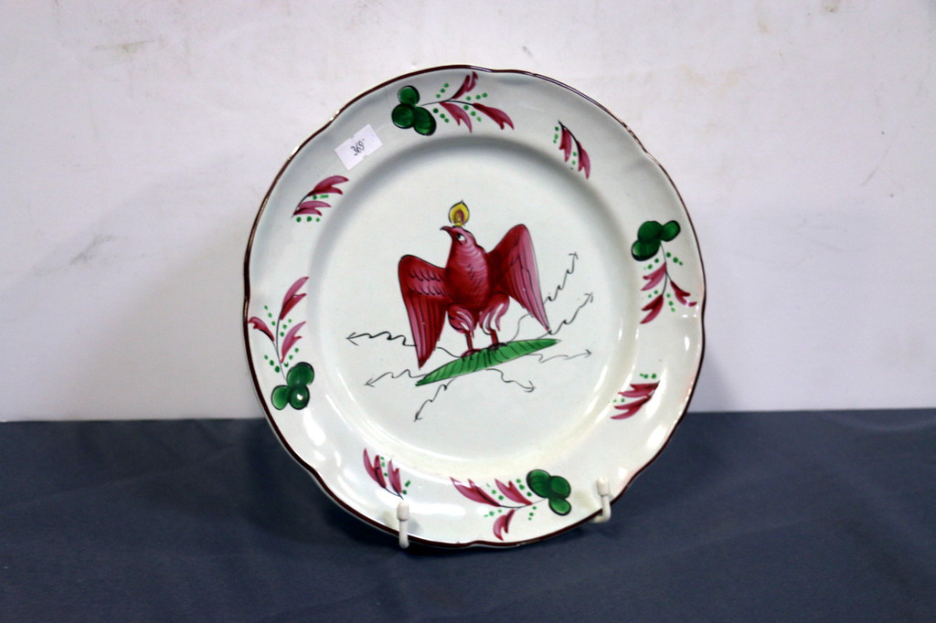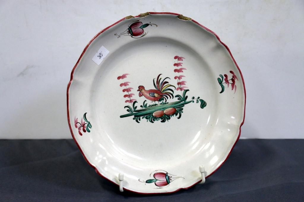 365 | NIEDERVILLER. Assiette à décor d'un coq sur un tertre. Egrenures | 40/60 |