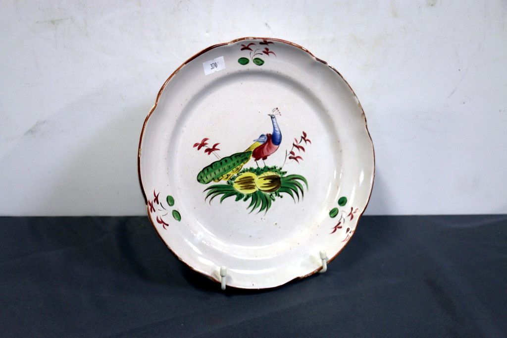 370 | LES ISLETTES Fin XVIII° début XIX°; Assiette à décor au paon sur un tertre | 50/80 |