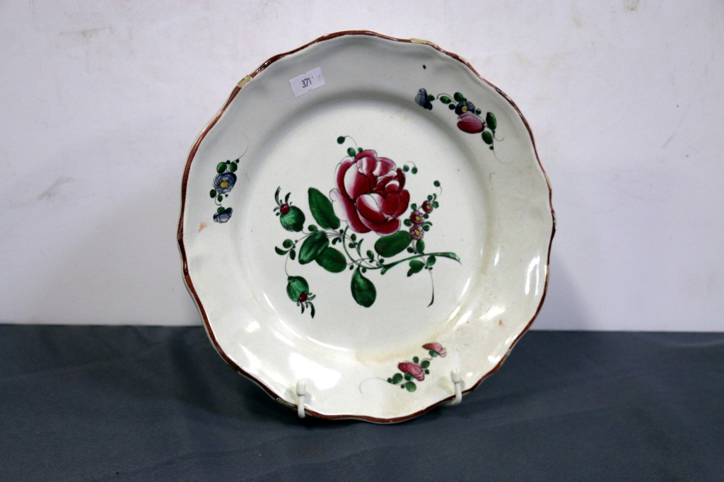 371 | VARAGES ?. Assiette à décor à la rose, | 15/30 |