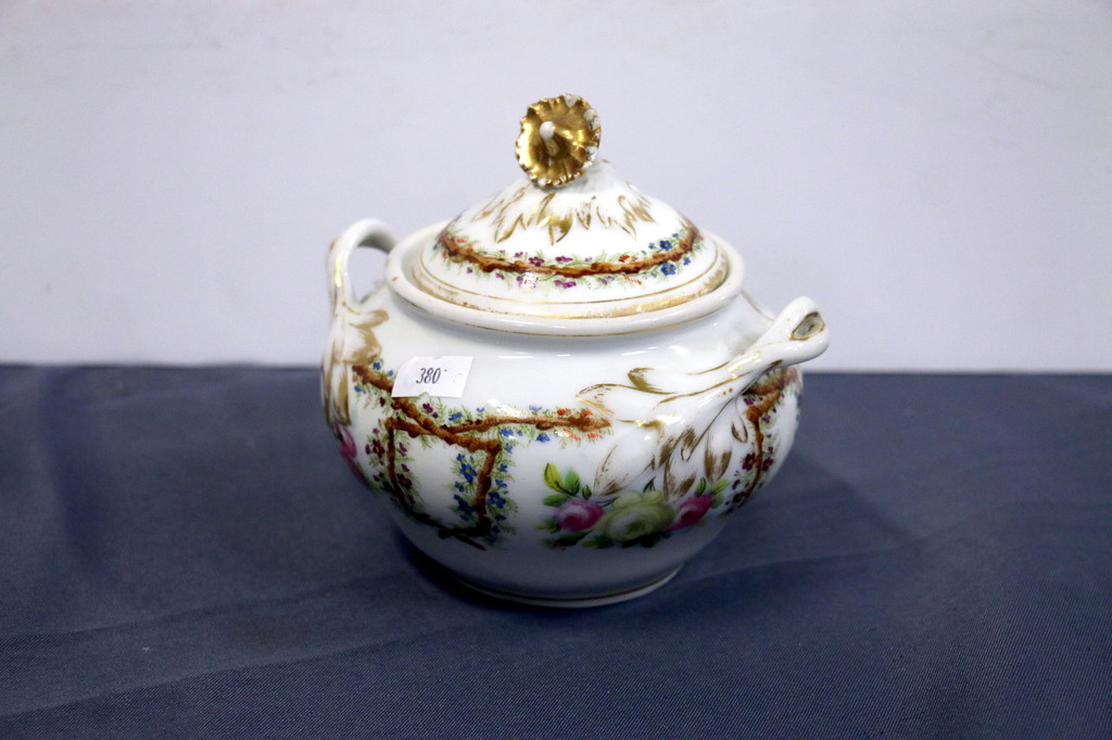 380 | ETIENNE Paris (29 rue du Paradis); Sucrier en porcelaine à décor de fleurs et de branchages. XIX°/XX° | 15/30 |