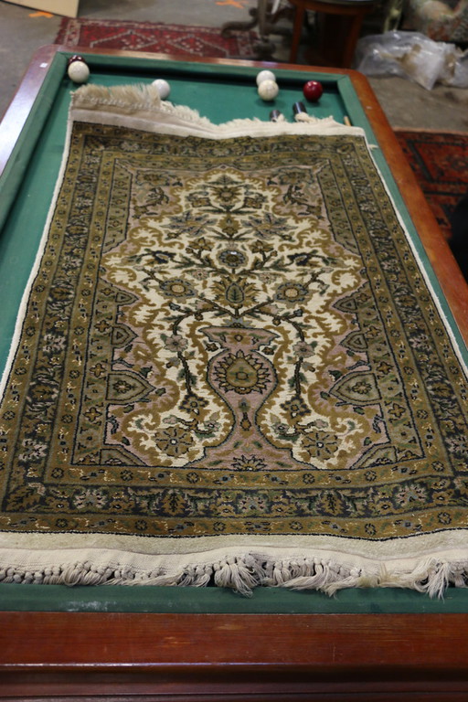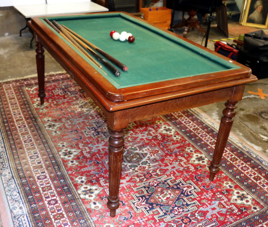 393 | Petit billard français cadre en chène et 4 pieds rainurés. H : 80 x 159 x 89 cm + accessoires | 150/200 |