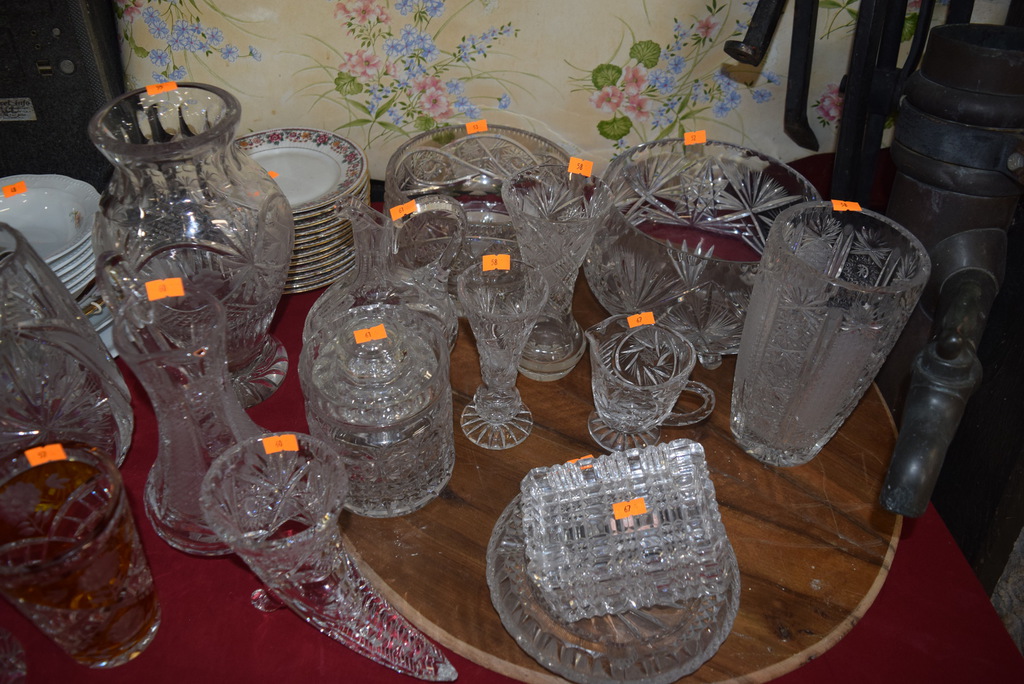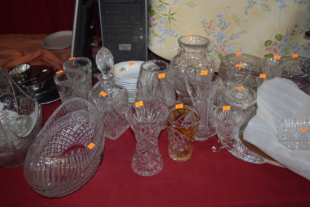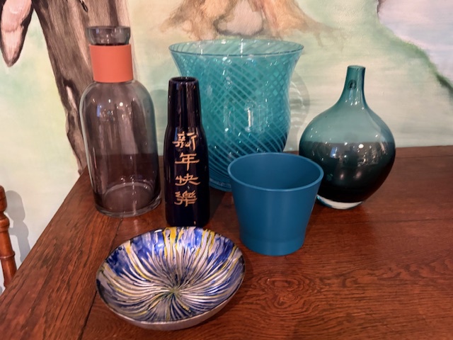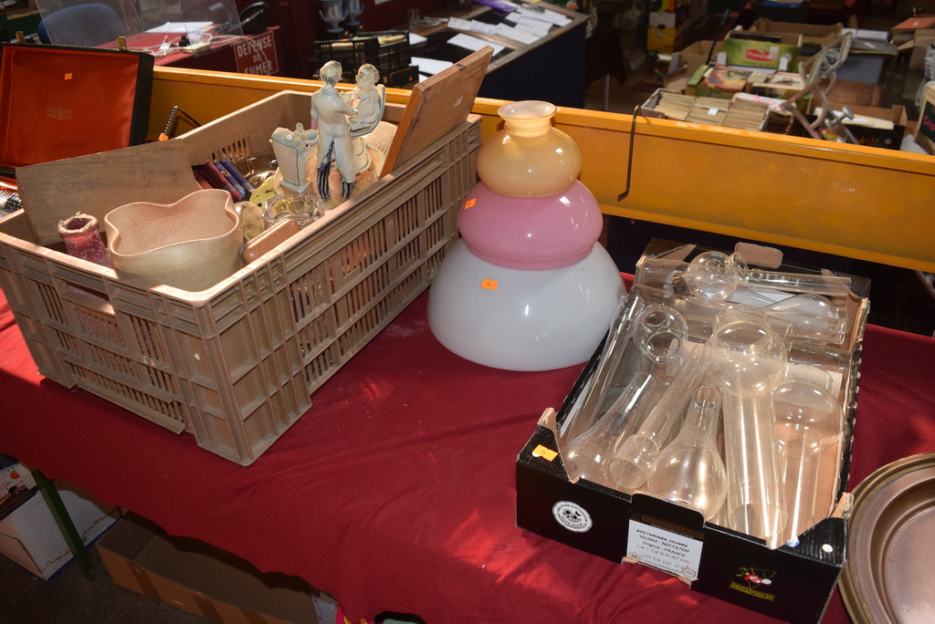 190 | Lot : vases, bouteilles, bougie et verre | |