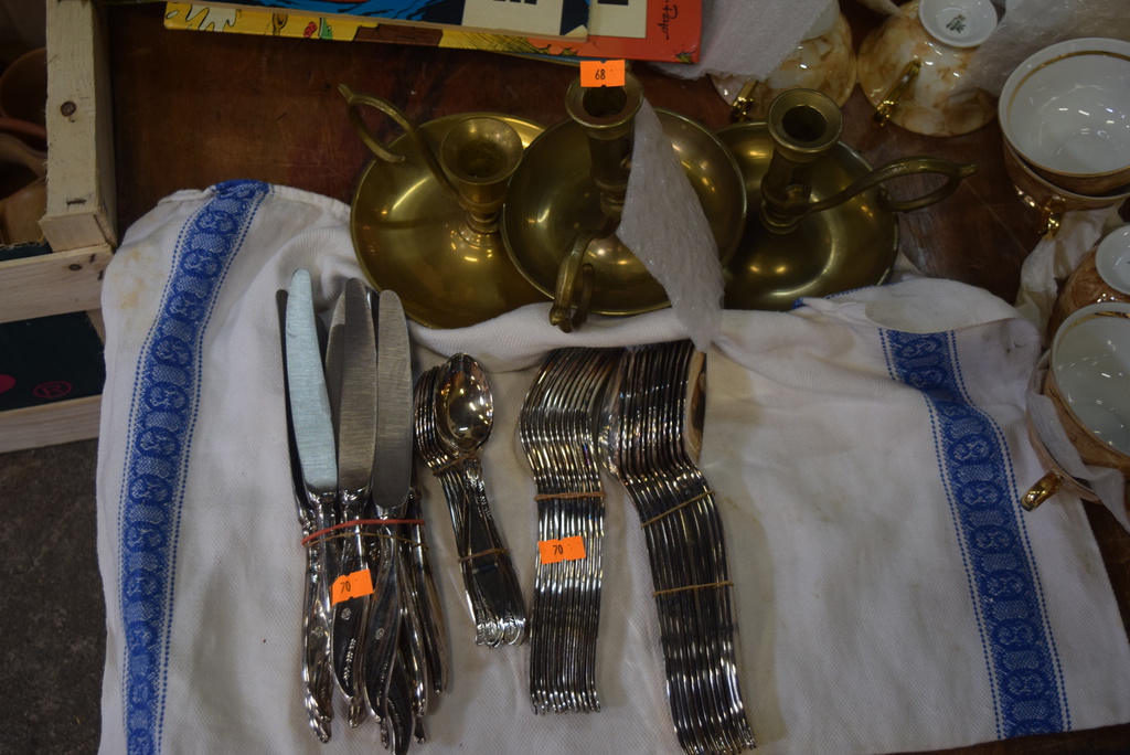 68 | 3 bougeoirs en cuivre + 1 canon | |