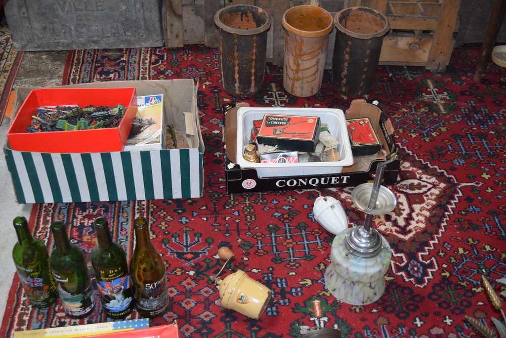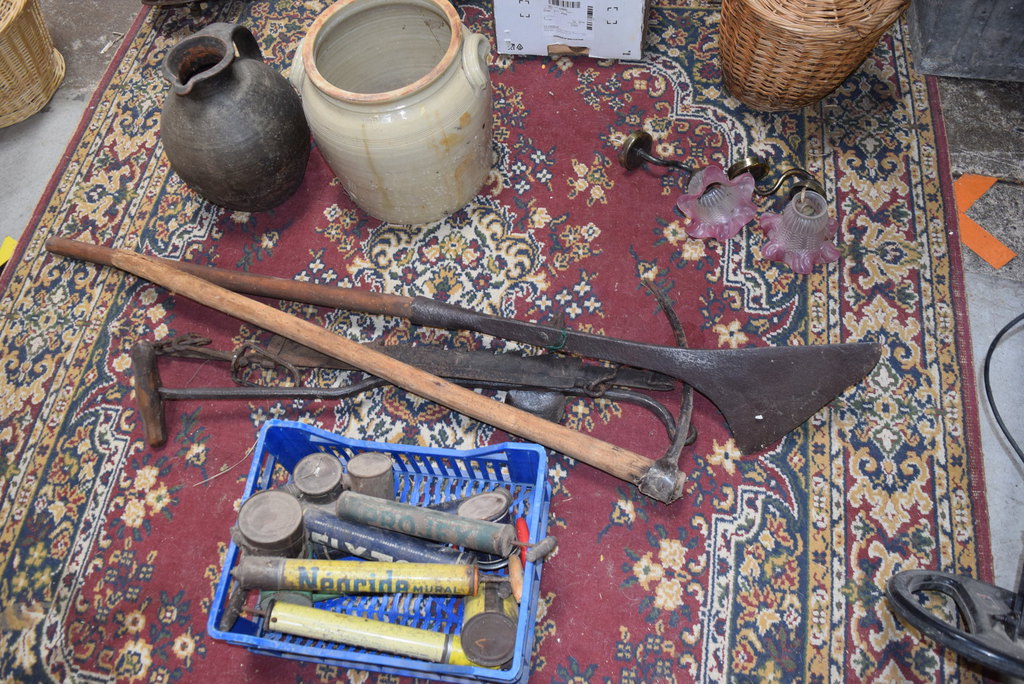 50 | Lot : cruches, tasses, poêles en terre cuite + objet divers | |
